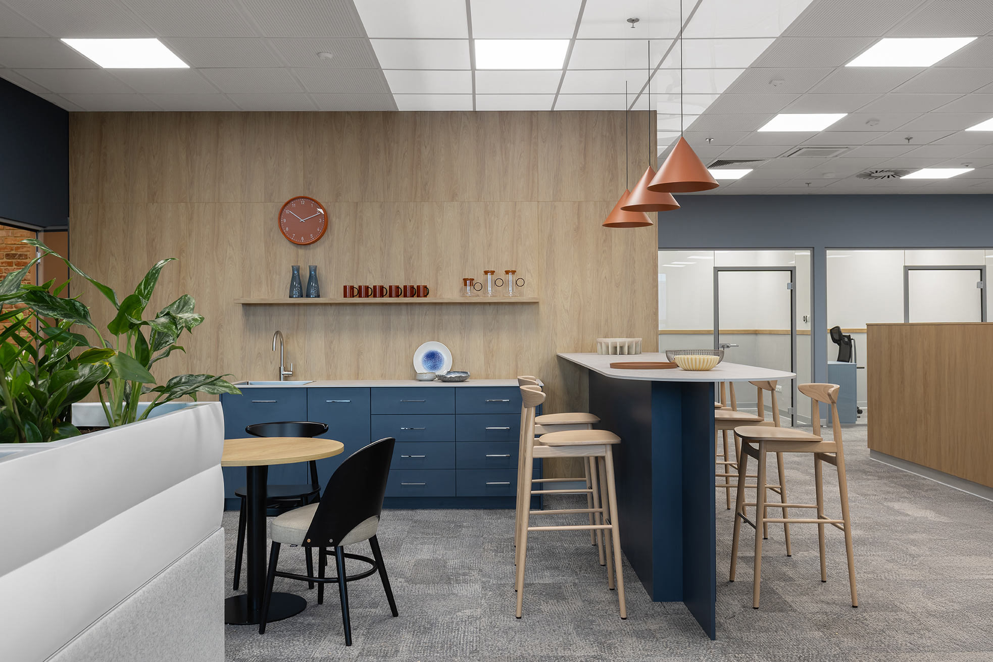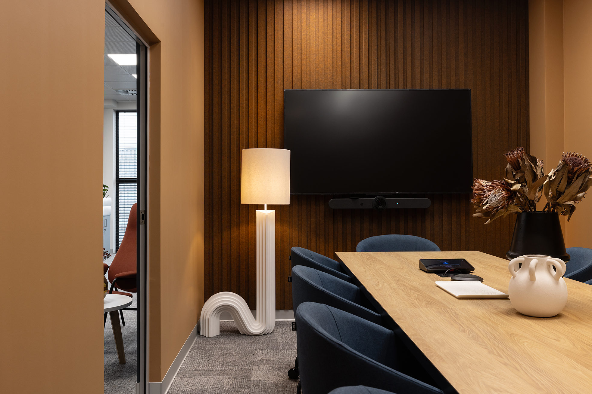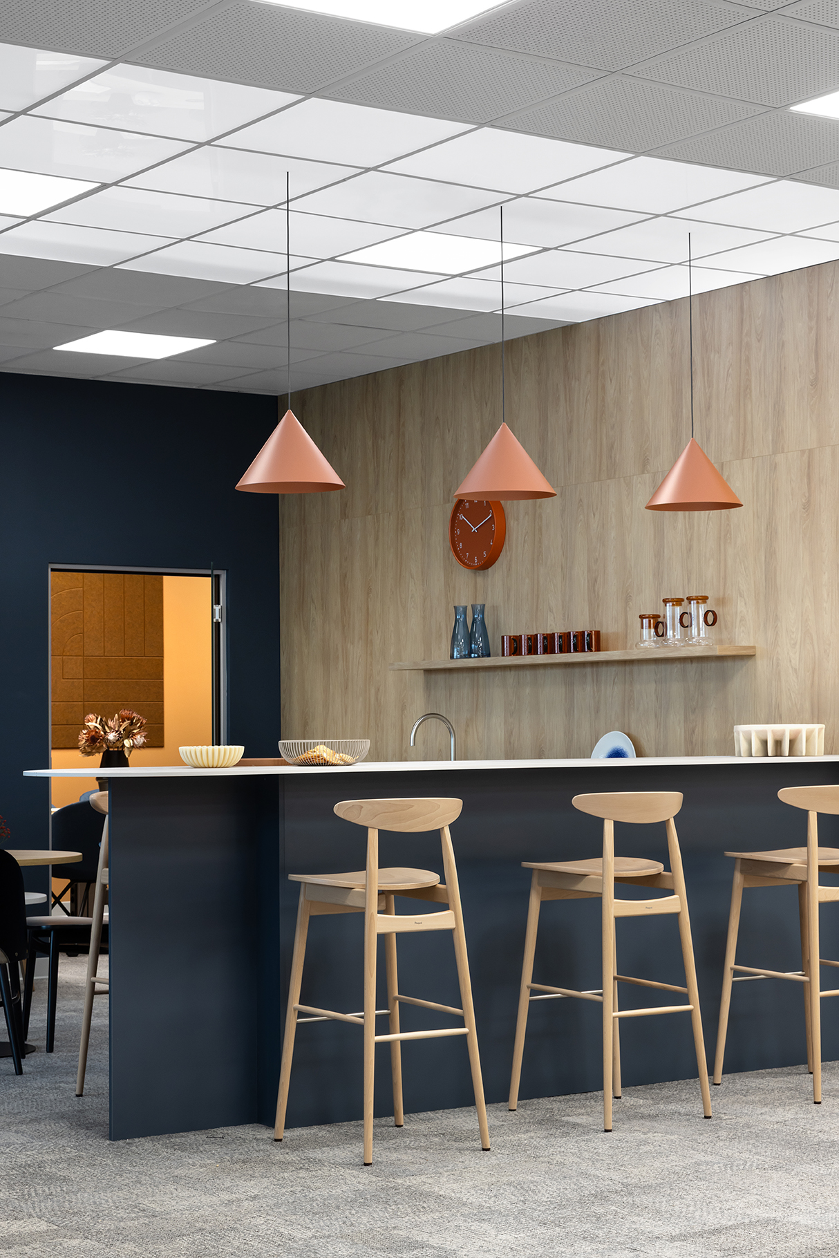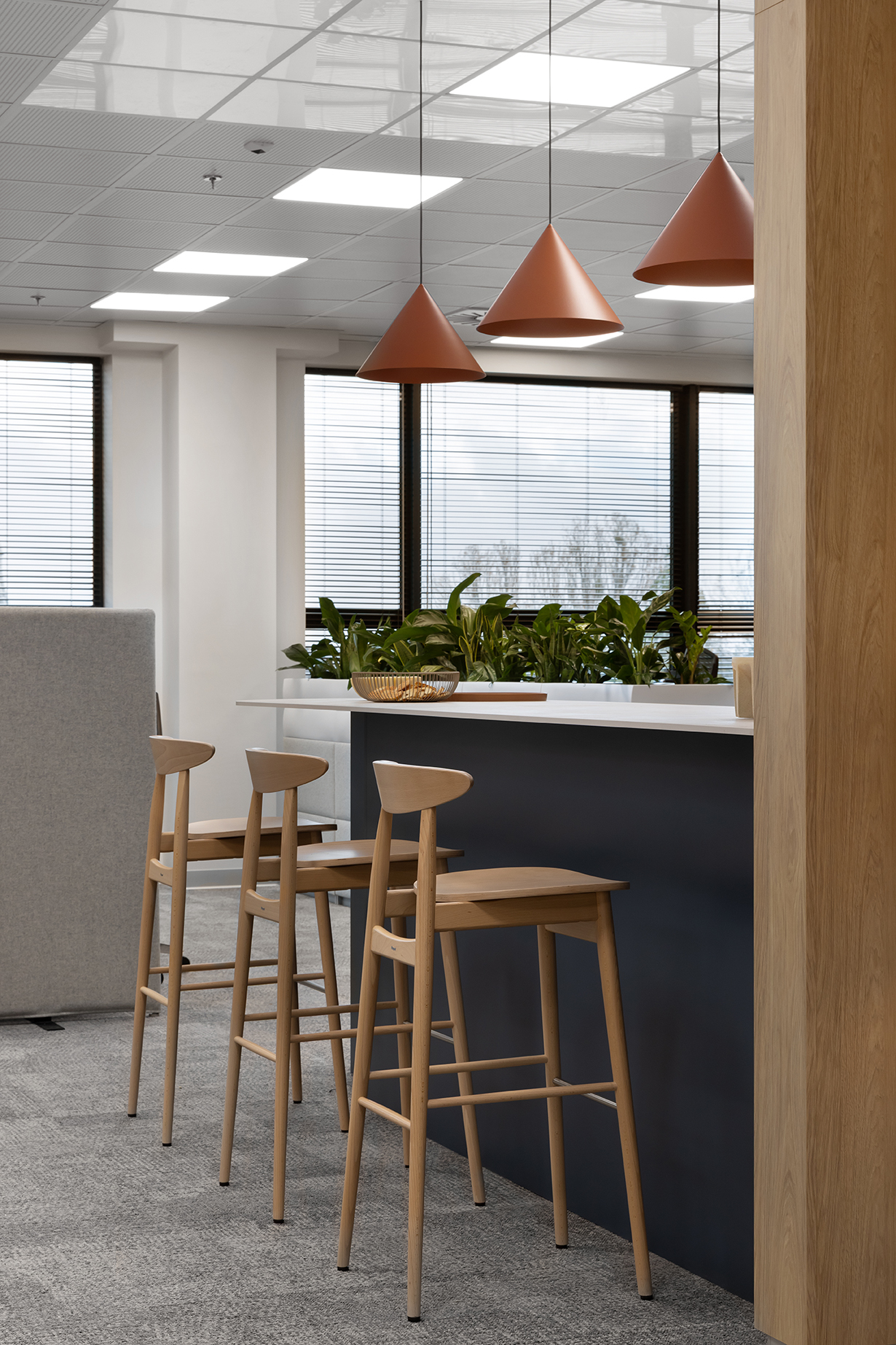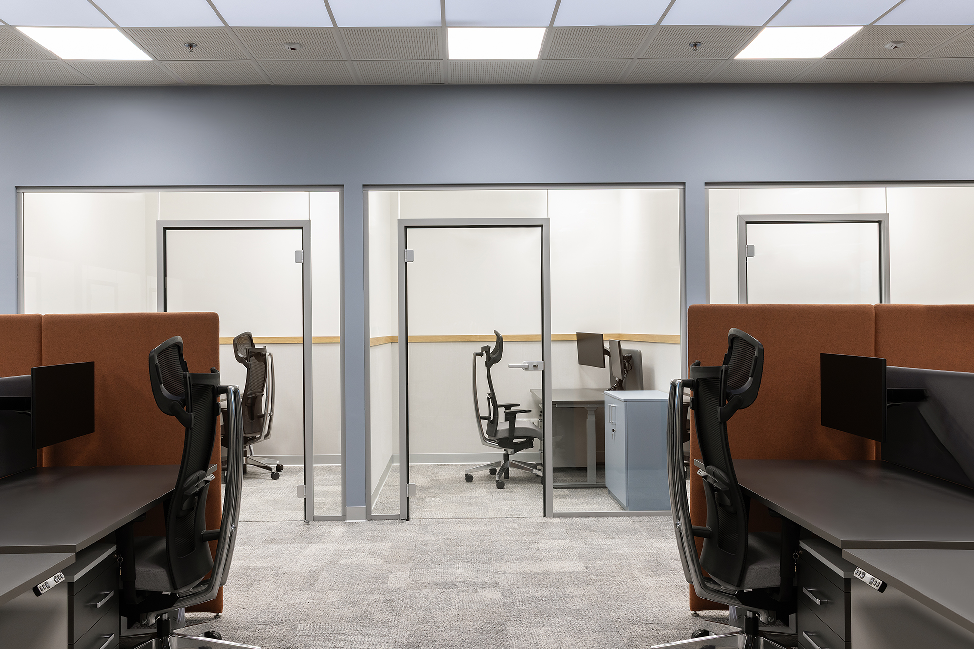 Całość została zaprojektowana z myślą o zapewnieniu komfortowych warunków pracy, przy jednoczesnym dostosowaniu przestrzeni do specyfiki organizacyjnej zespołów.