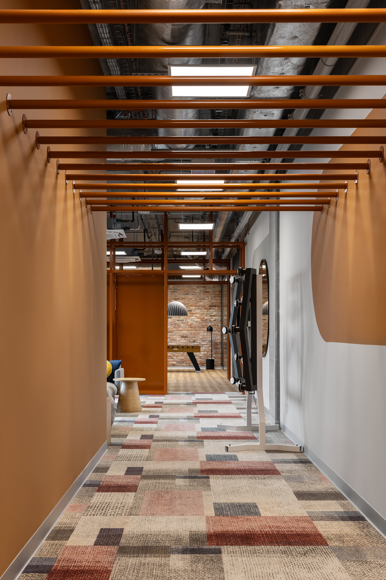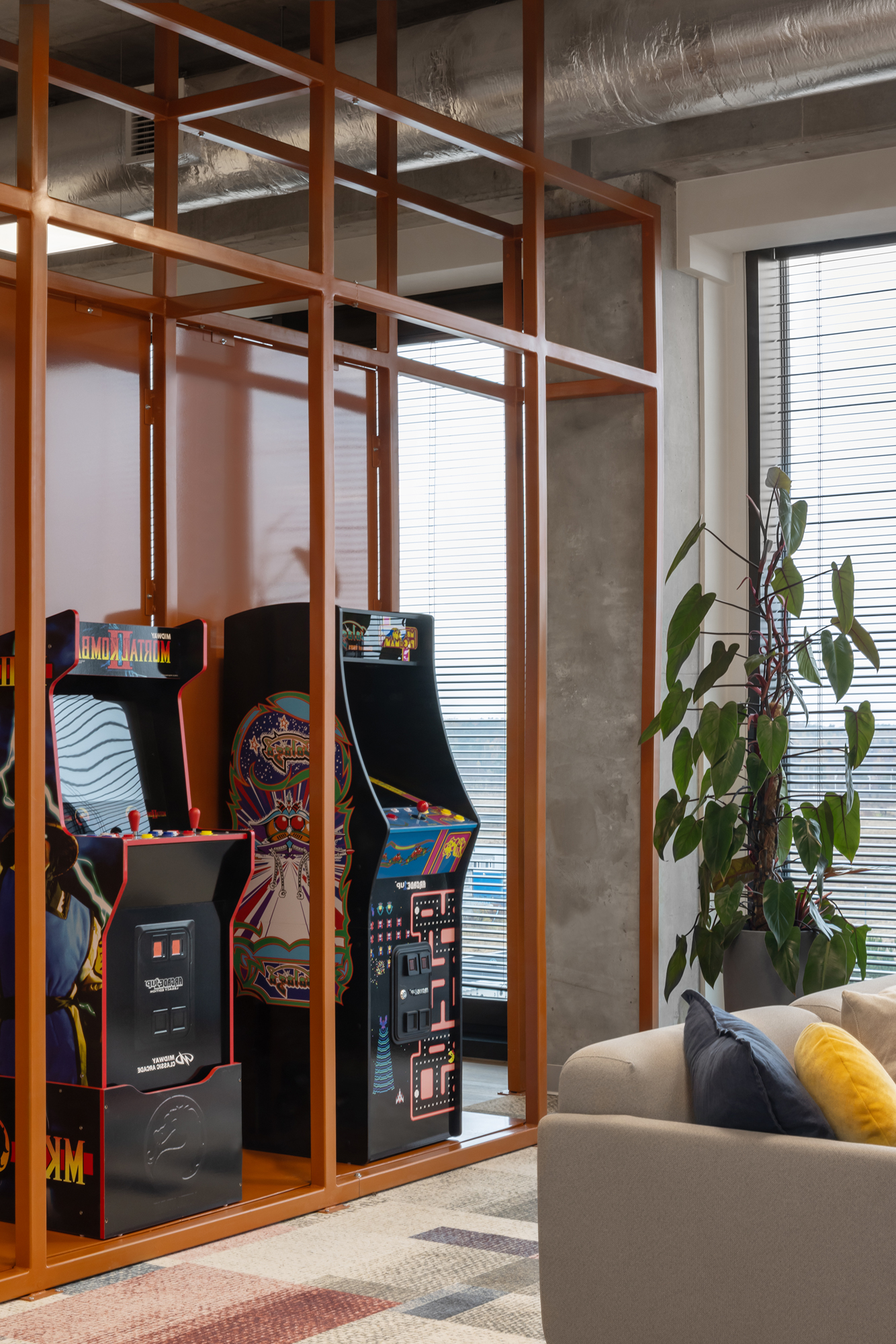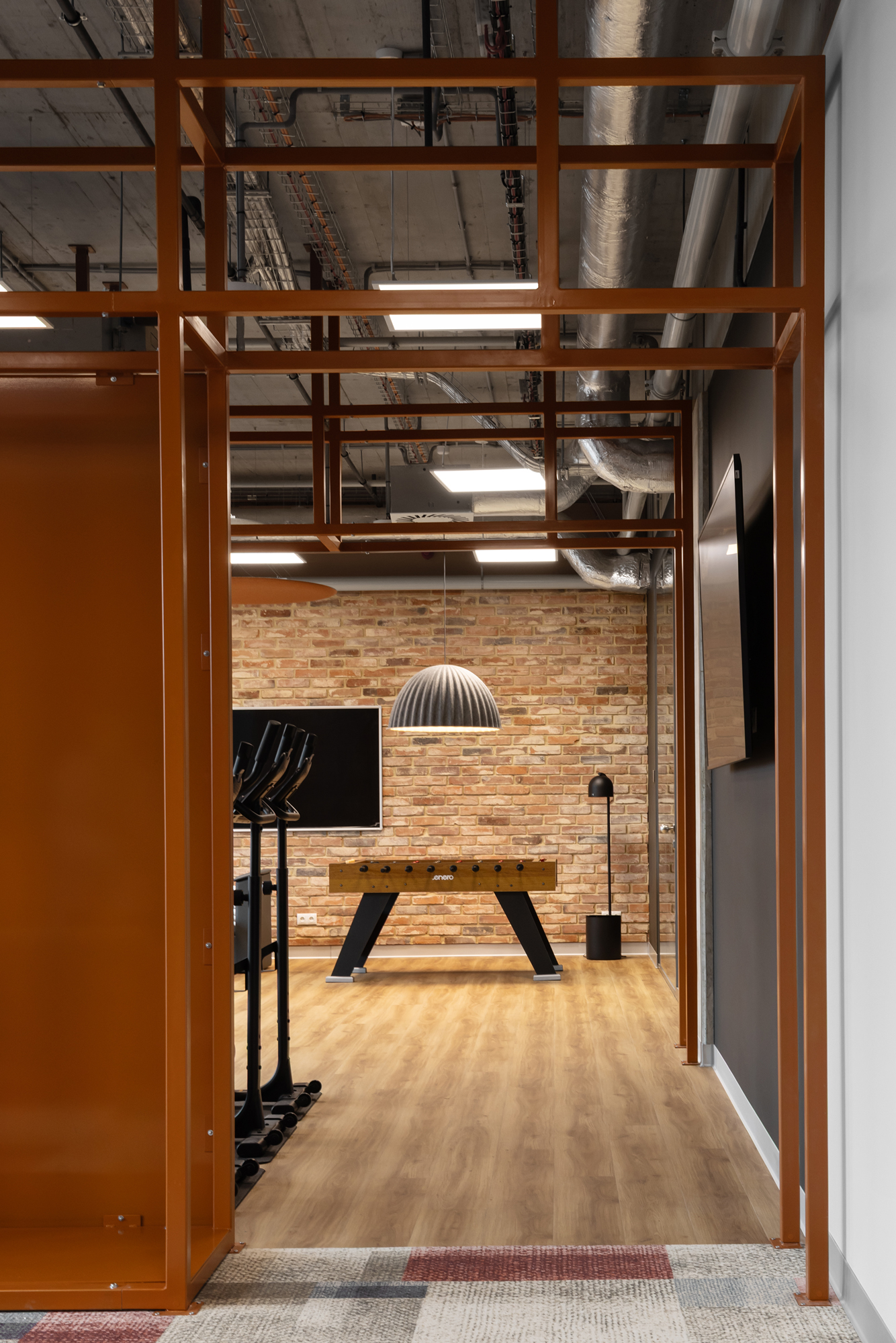 Przestrzeń została podzielona na trzy zasadnicze strefy funkcjonalne. Pierwsza to strefa relaksu z wygodnymi kanapami, fotelami oraz telewizorem. Druga część poświęcona jest aktywności fizycznej i grom. Znajduje się tu niewielka siłownia, stoły do piłkarzyków, czy dart, umożliwiające ruch i zabawę w ciągu dnia pracy. Trzecia, wydzielona strefa oferuje kameralne warunki do wyciszenia i regeneracji. Wyposażono ją w wbudowaną w ścianę tężnię, sofy, fotele, maty do jogi oraz subtelne oświetlenie.